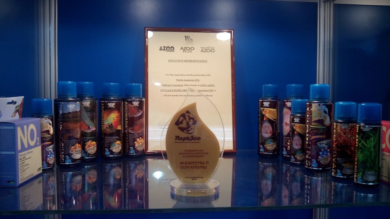 На нашем стенде были также представлены и другие не менее интересные и достойные внимания товары AZOO: основная линейка средств по уходу за аквариумной водой и новая серия AZOO PLUS.